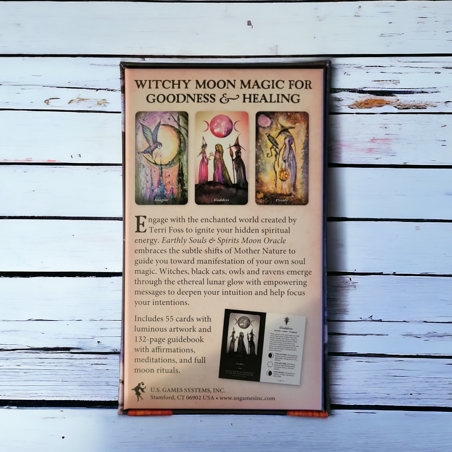 Engage with the enchanted world created by Terri Foss to ignite your hidden spiritual energy. Earthly Souls & Moon Oracle embraces the subtle shifts of Mother Nature to guide you toward manifestation of your own soul magic. Witches, black cats, owls and ravens emerge through the ethereal lunar glow with empowering messages to deepen your intuition and help focus your intentions.