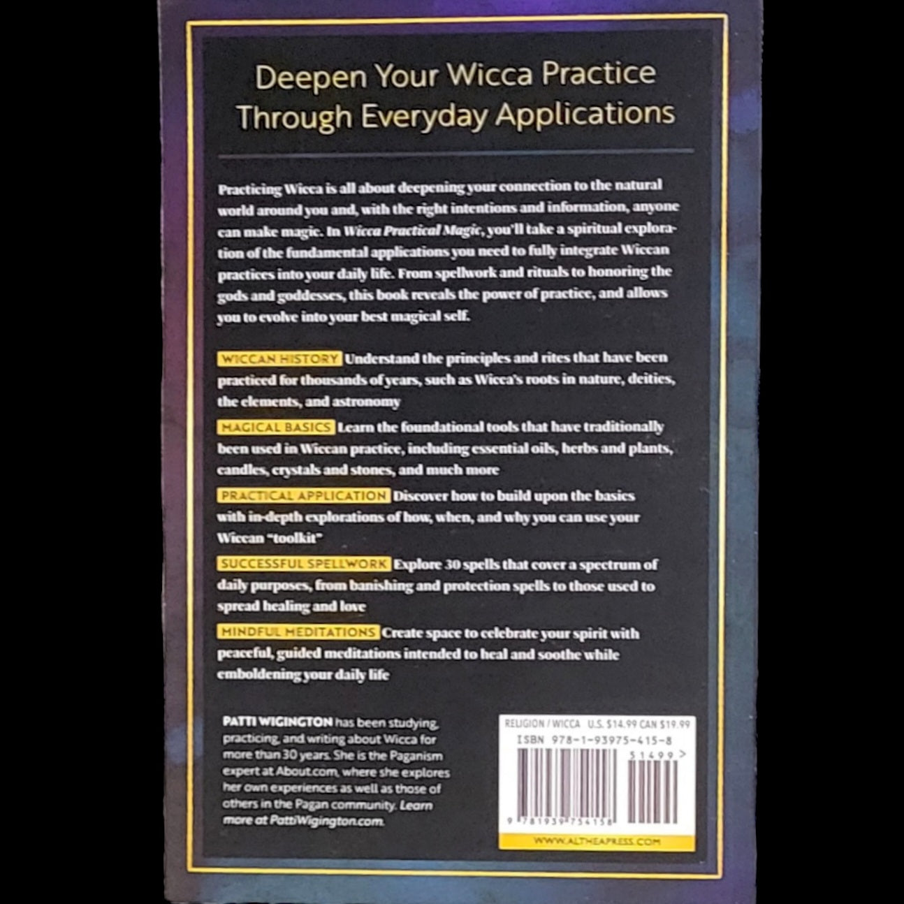 – 30 categorized spells for love, protection, banishment, prosperity, and healingWhether you're new to the path or returning home to it, Wicca Practical Magic will guide you in crafting a life that honors the earth and the power within.